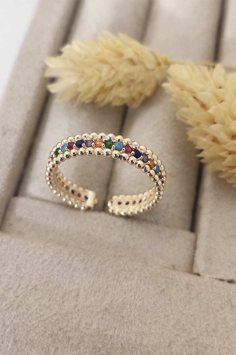 Anillo ajustable chapado en oro amarillo con circones.