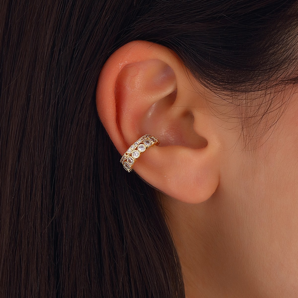 Earcuff - Latón chapado en oro y circonita