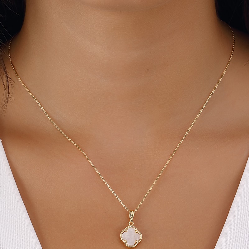 Collar de trébol - Latón chapado en oro y nácar
