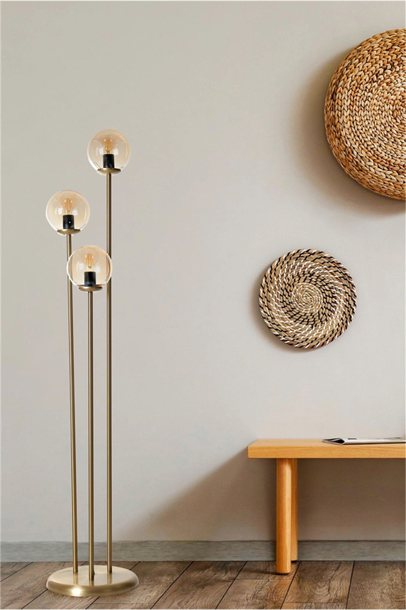 Lámpara de pie - Dorado - 3 x 60 W