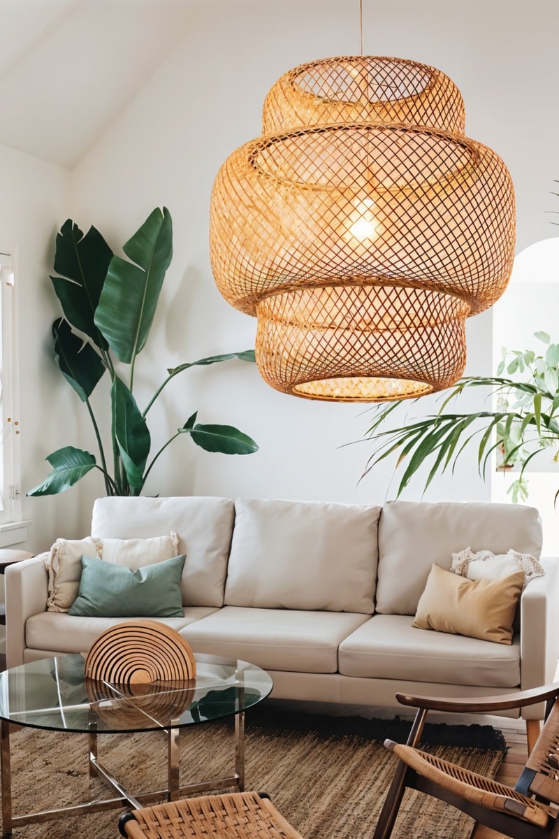 Lámpara de techo de bambú.