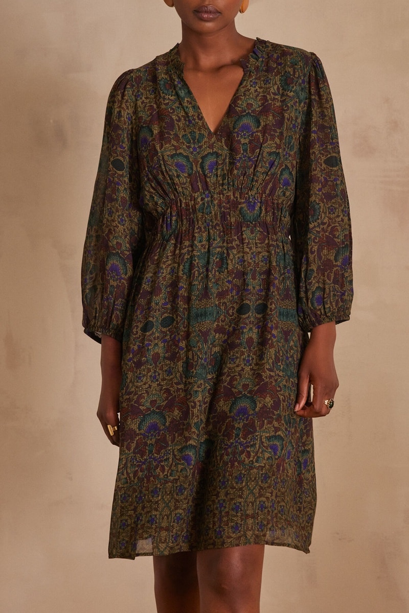 Vestido evasé - Marrón oscuro y verde oscuro