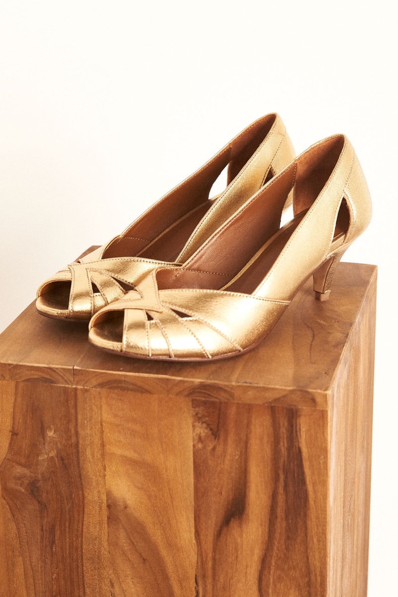 Zapatos de piel caprina de tacón - Dorado
