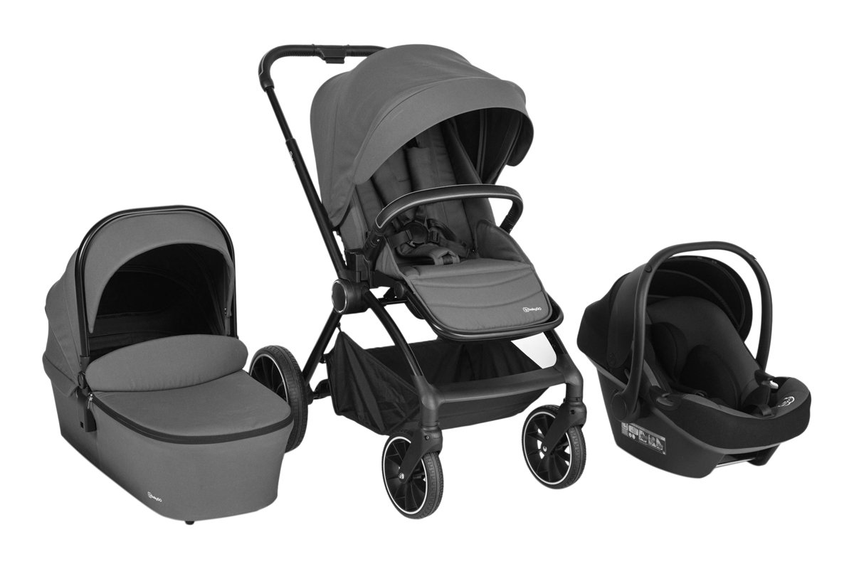 Ruedas de caucho duraderas, con suspensión y freno en las ruedas traseras.