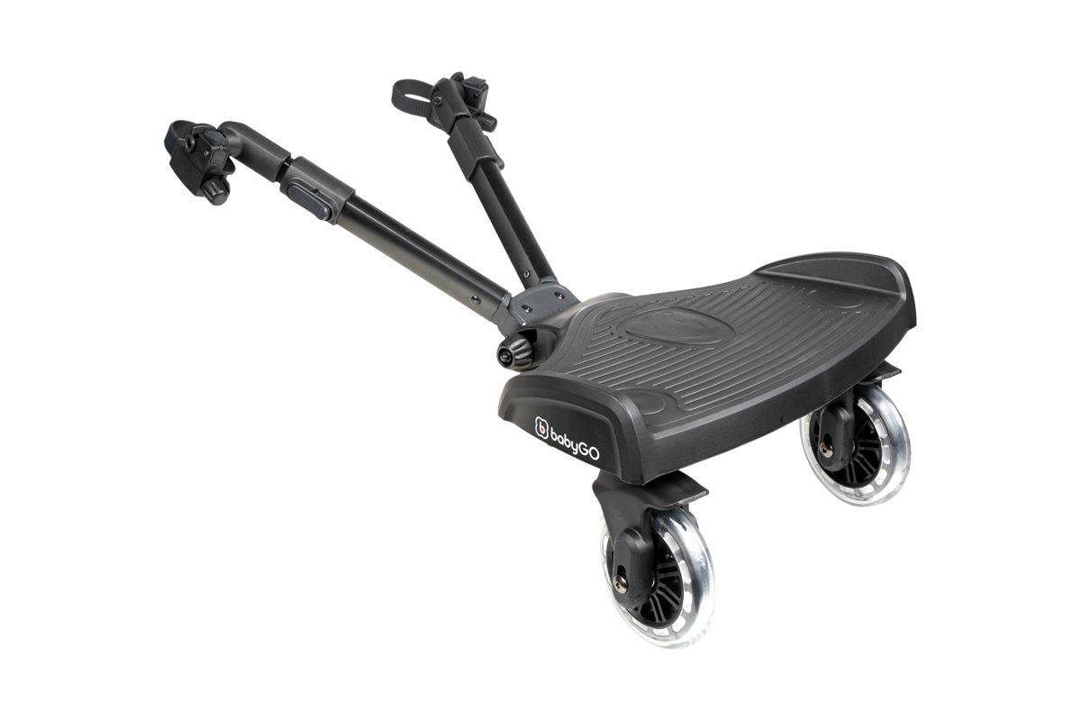 Este patinete práctico puede fijarse fácilmente a casi todas las sillas de paseo y puede guardarse para ahorrar espacio cuando no se utiliza.