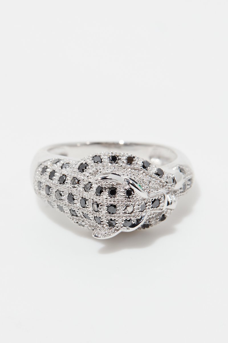 Anillo Panthère Noire - Oro blanco, diamantes y esmeralda
