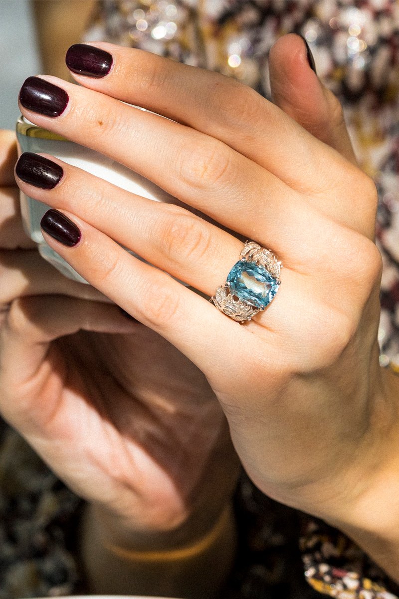 Anillo Toliara - Oro blanco, diamantes y topacio