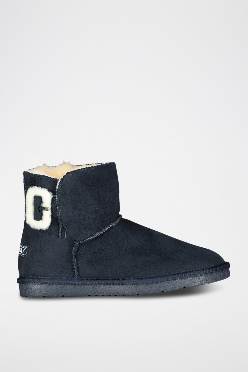 Hebilla decorativa con pelo sintético en contraste en el lateral.