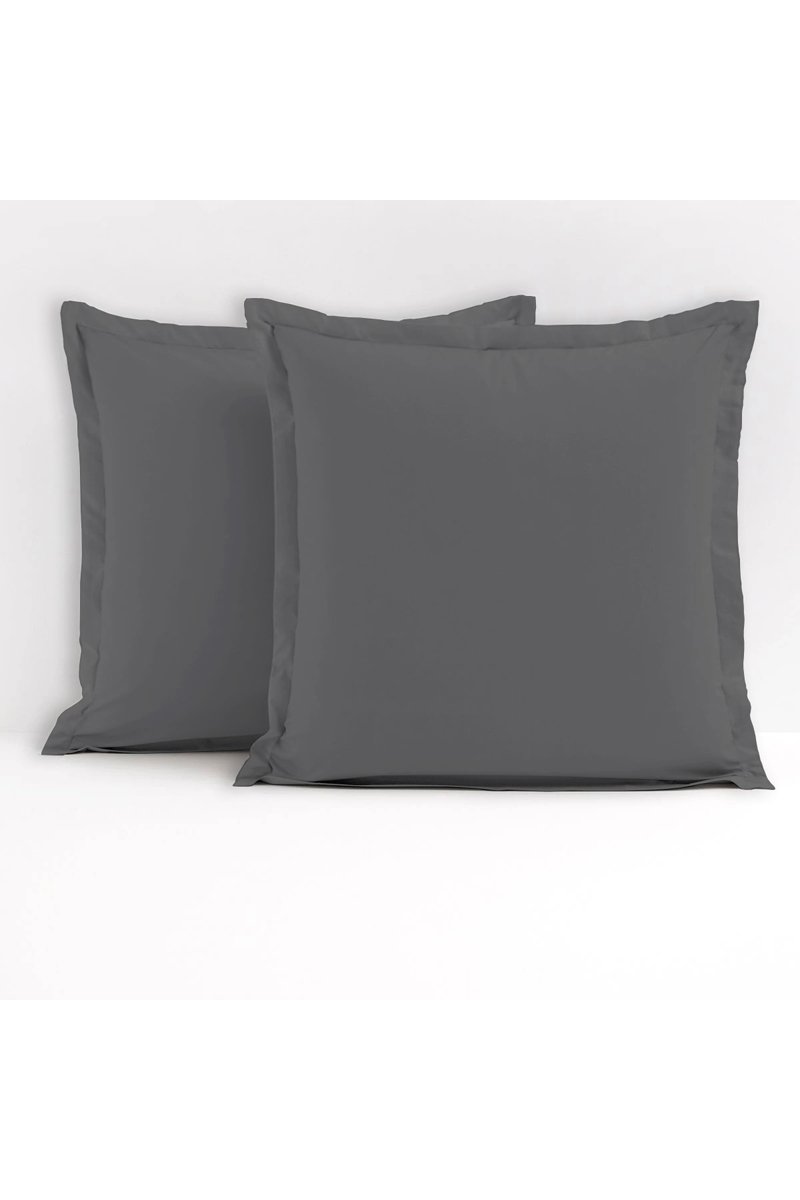 2 fundas de almohada de algodón 57 hilos/cm² - Gris oscuro - 50 x 70 cm y 63 x 63 cm