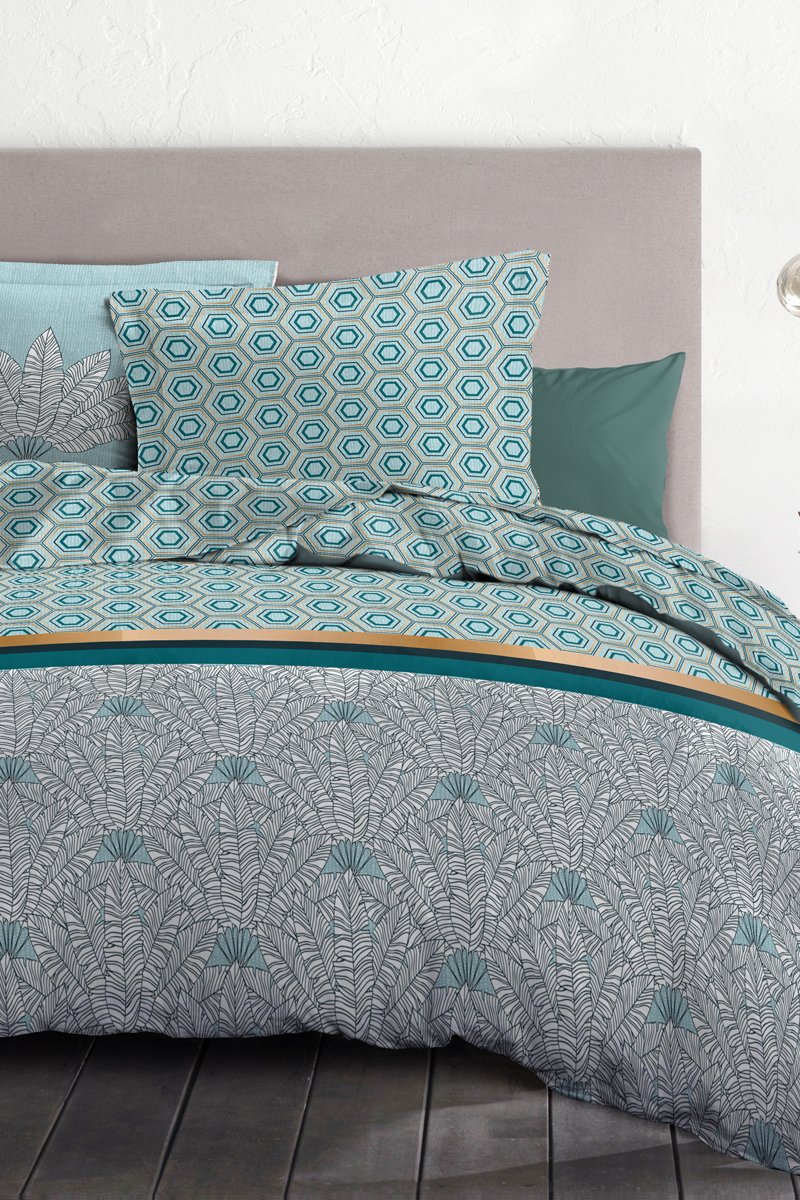 Juego de nórdico de algodón - 57 hilos/cm² Louxor - Verde y blanco