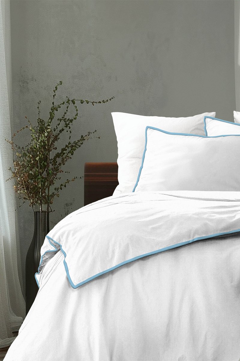 Juego de nórdico de percal de algodón 80 hilos/cm² La Tzigane - Blanco y azul maya