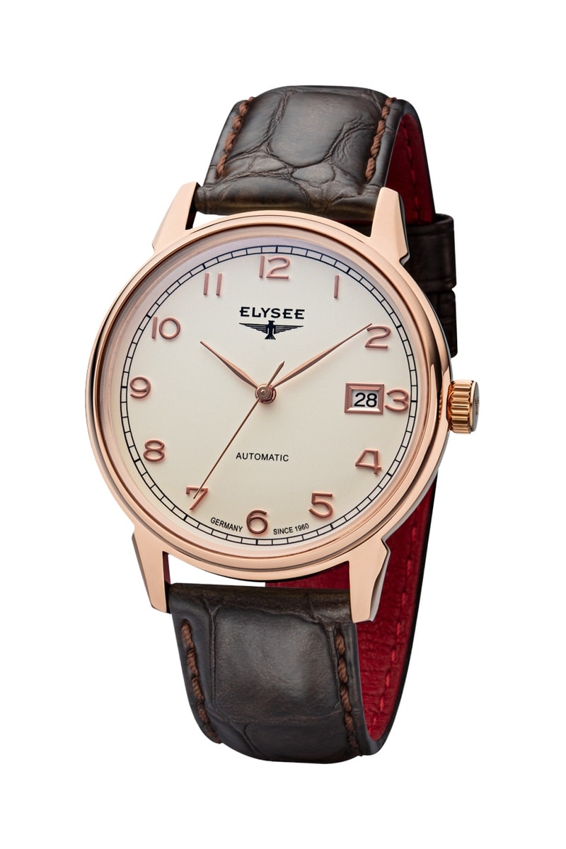 Reloj automático de piel - Marrón y dorado