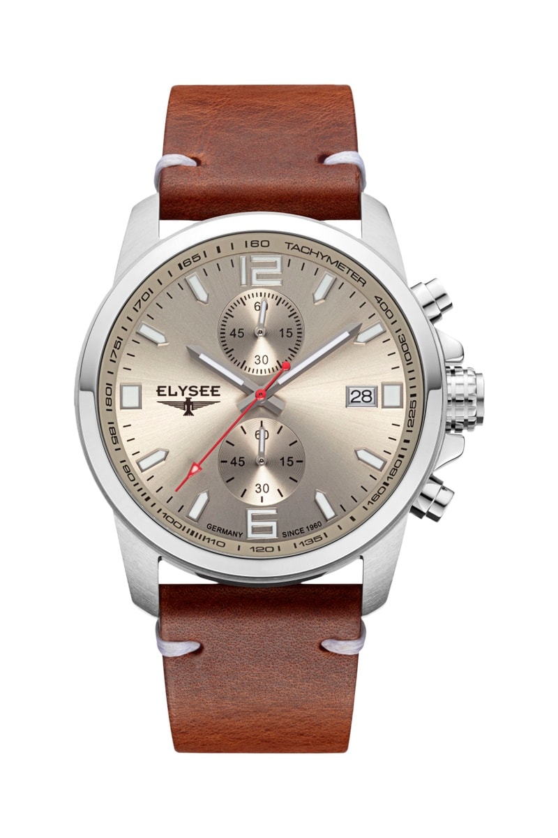 Reloj de cuarzo de piel - Cronógrafo - Marrón y plateado