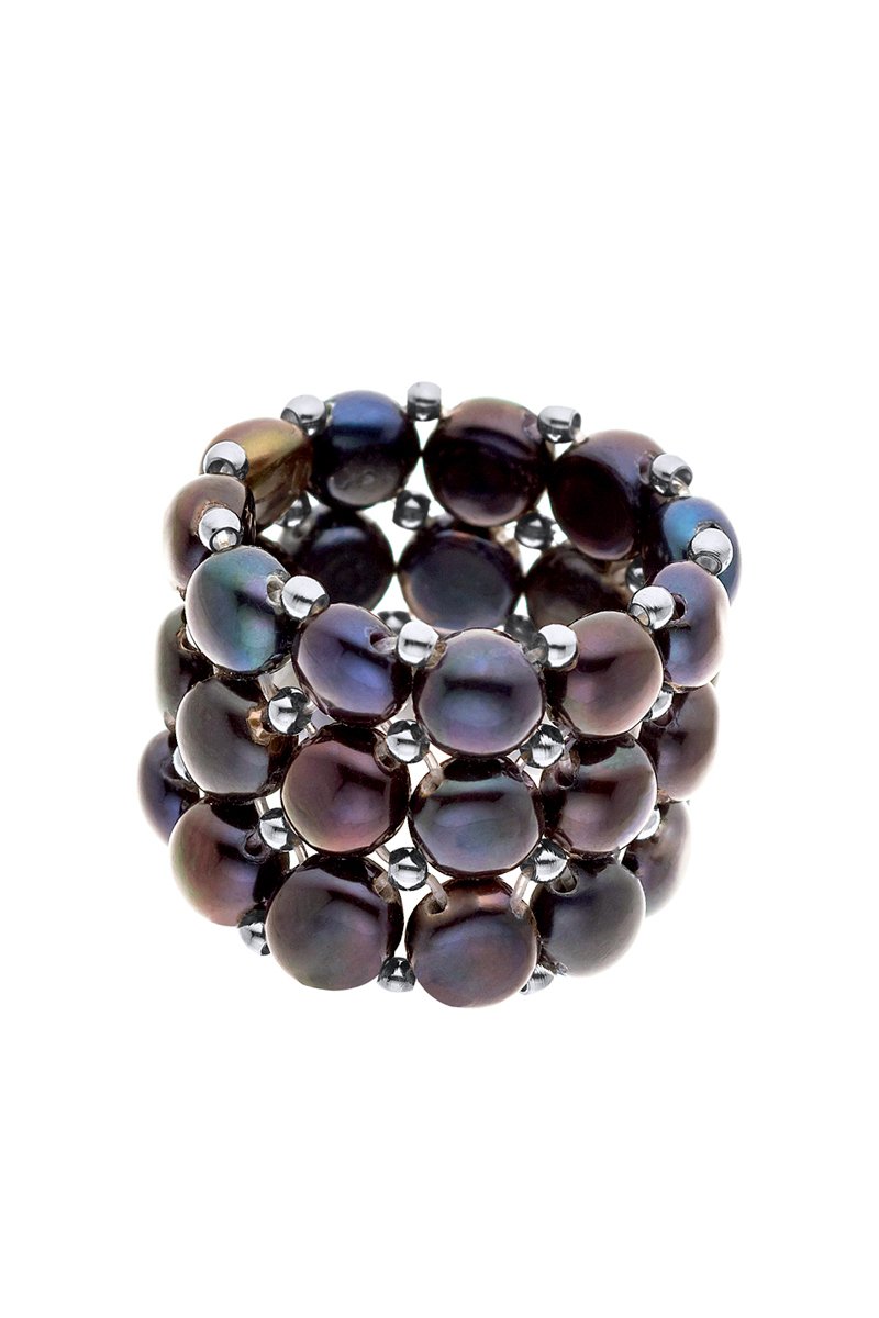 Anillo elástico con perlas cultivadas de agua dulce.
