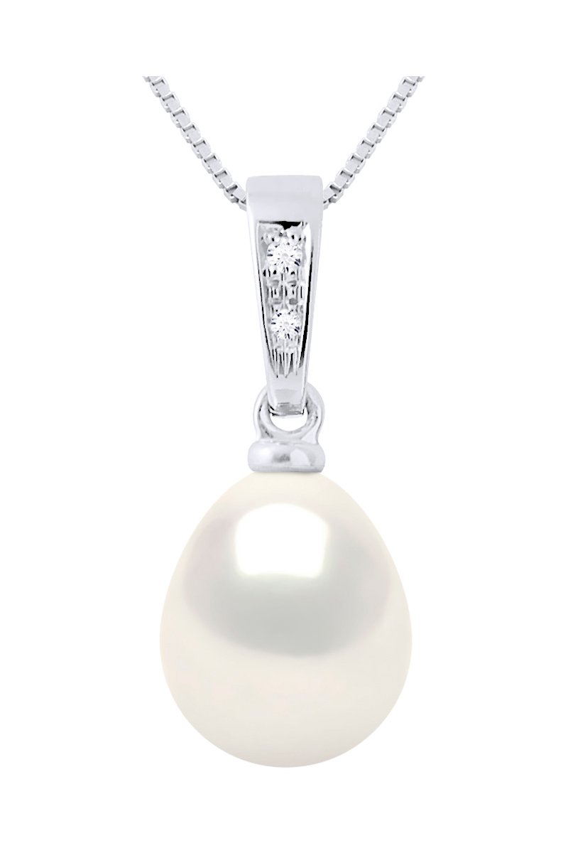 Colgante de oro blanco con una perla cultivada y un diamante.