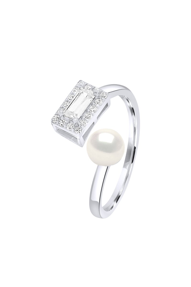 Anillo ajustable de plata con una perla cultivada de agua dulce y circonitas.