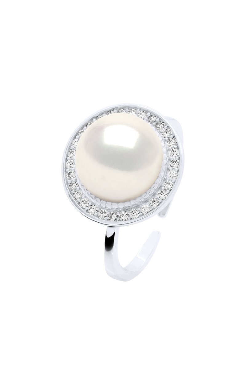Anillo ajustable de plata con una perla cultivada de agua dulce y circonitas.