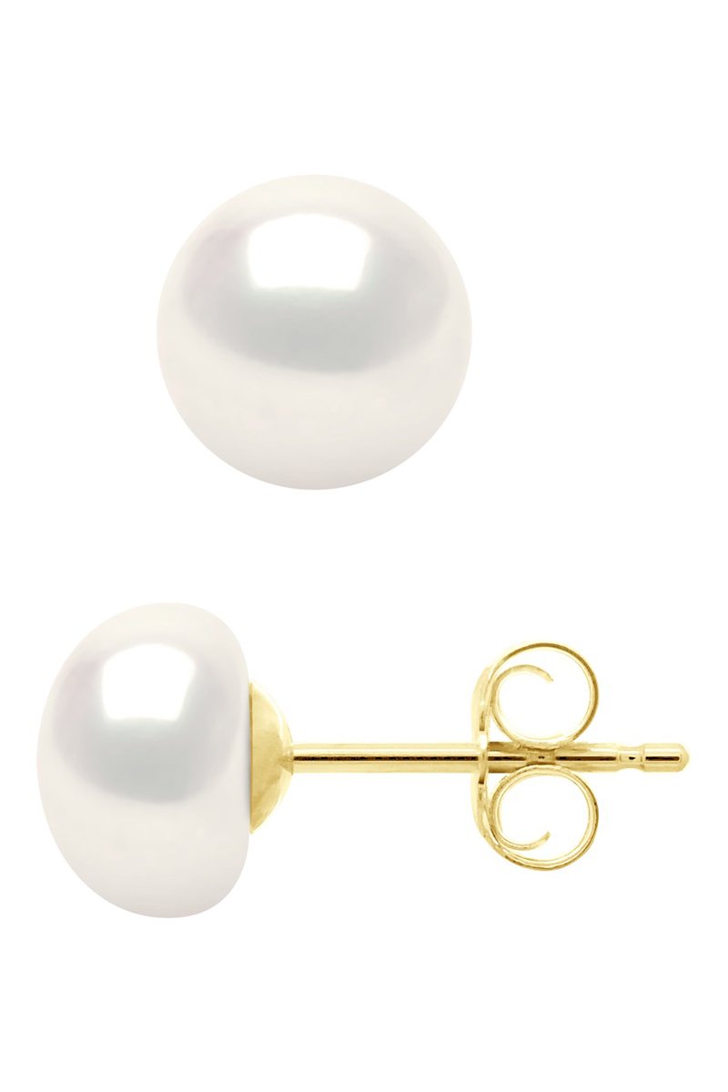 Dormilonas de oro amarillo con una perla cultivada.