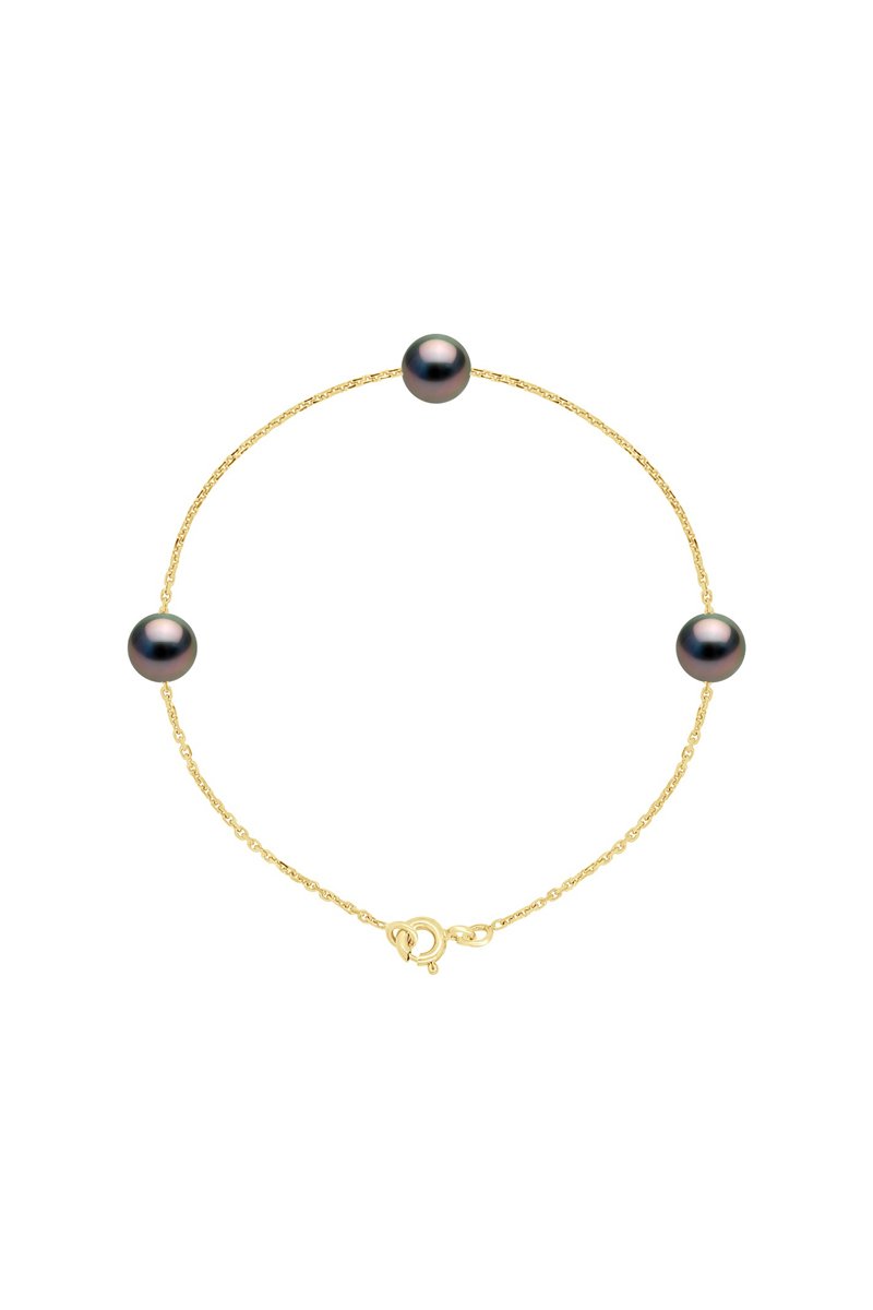 Pulsera de oro amarillo con 3 perlas cultivadas.