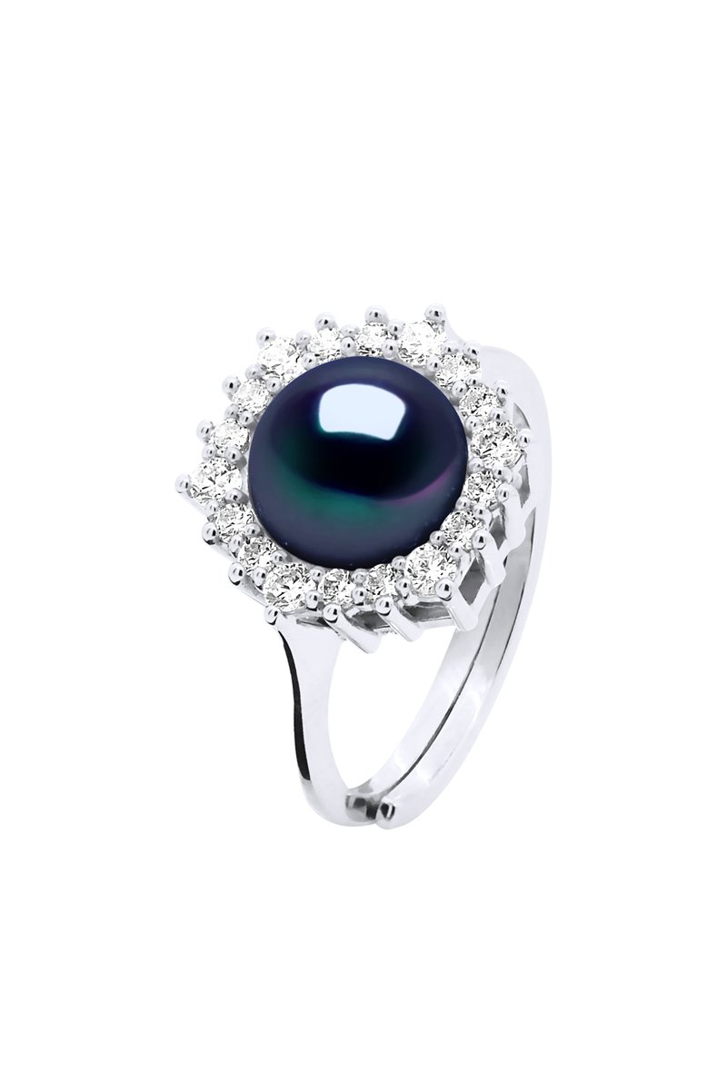Anillo ajustable de plata con una perla cultivada de agua dulce y circonitas.