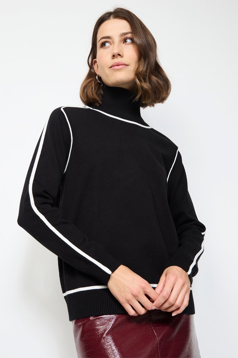 Ribetes en contraste en los hombros, en las mangas, delante y detrás.