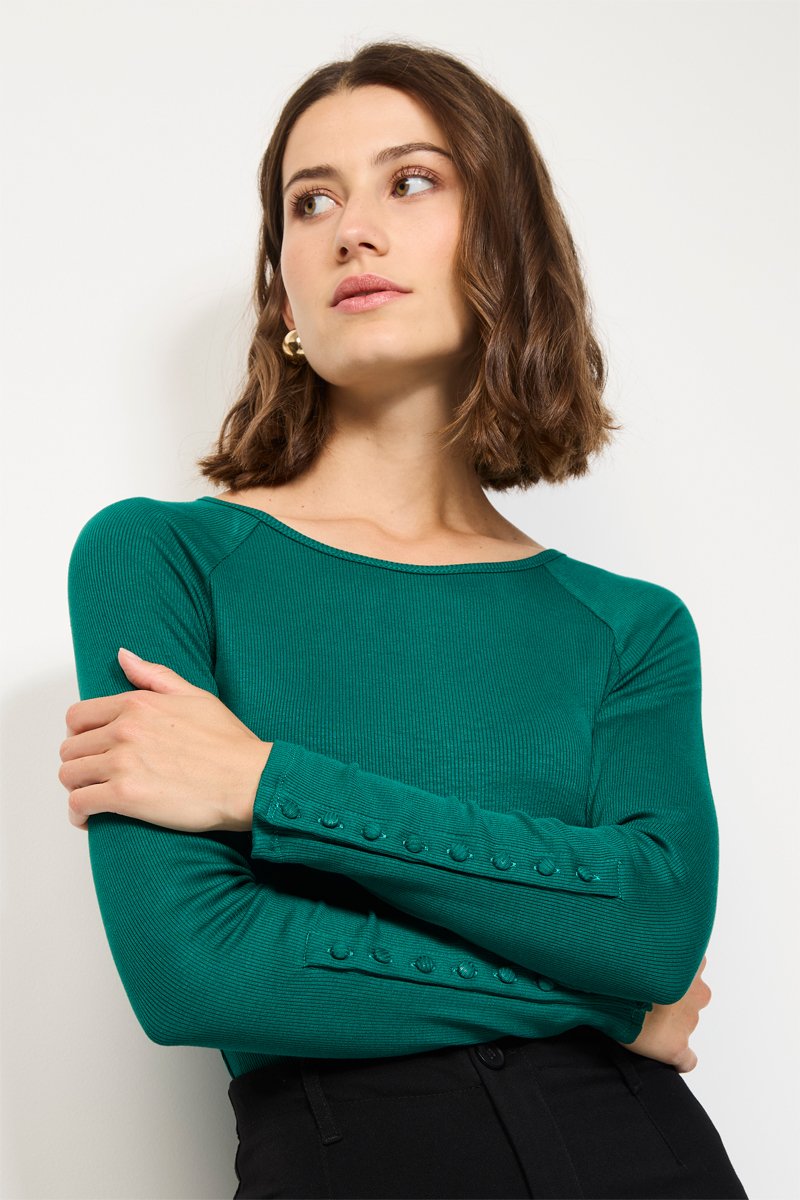 Manga larga con botones a presión.