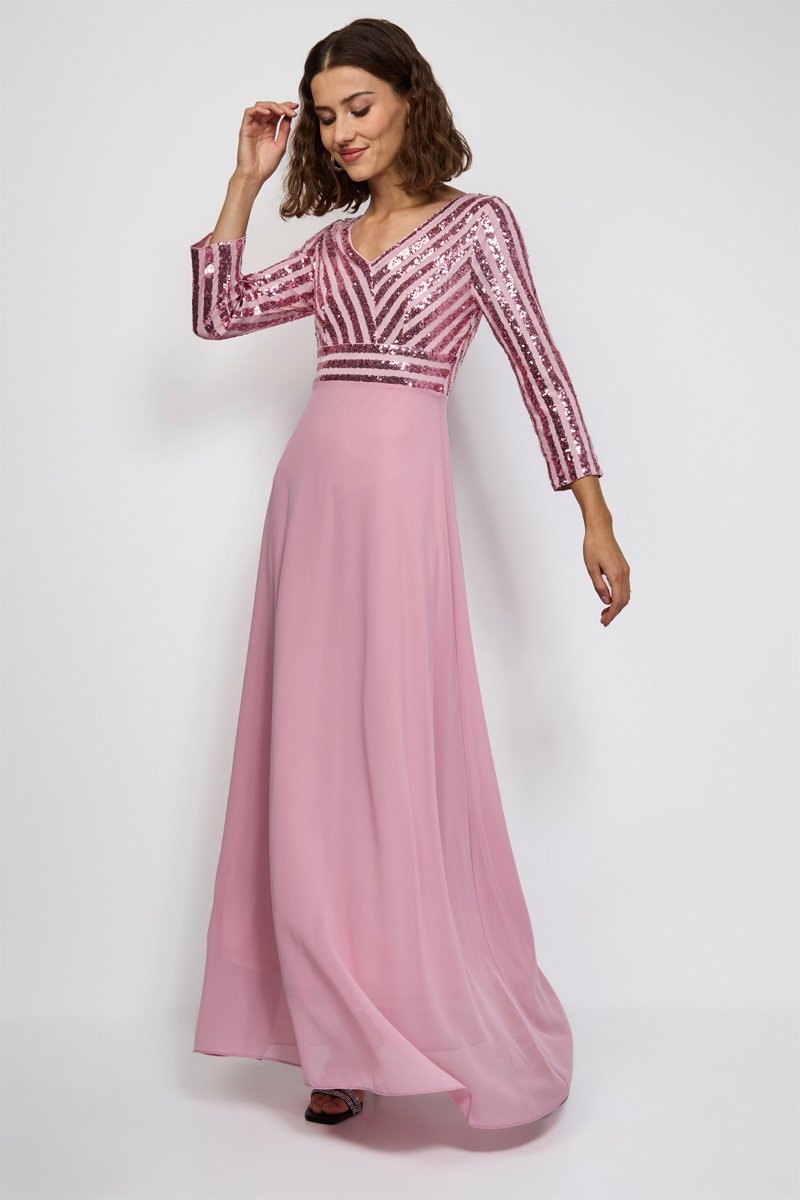 Vestido largo con lentejuelas.