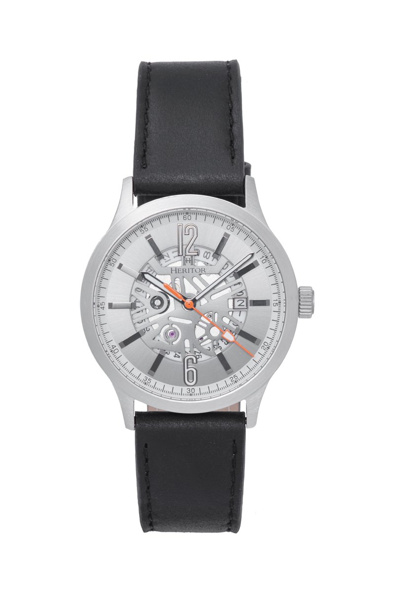 Reloj automático de piel - Negro y plateado