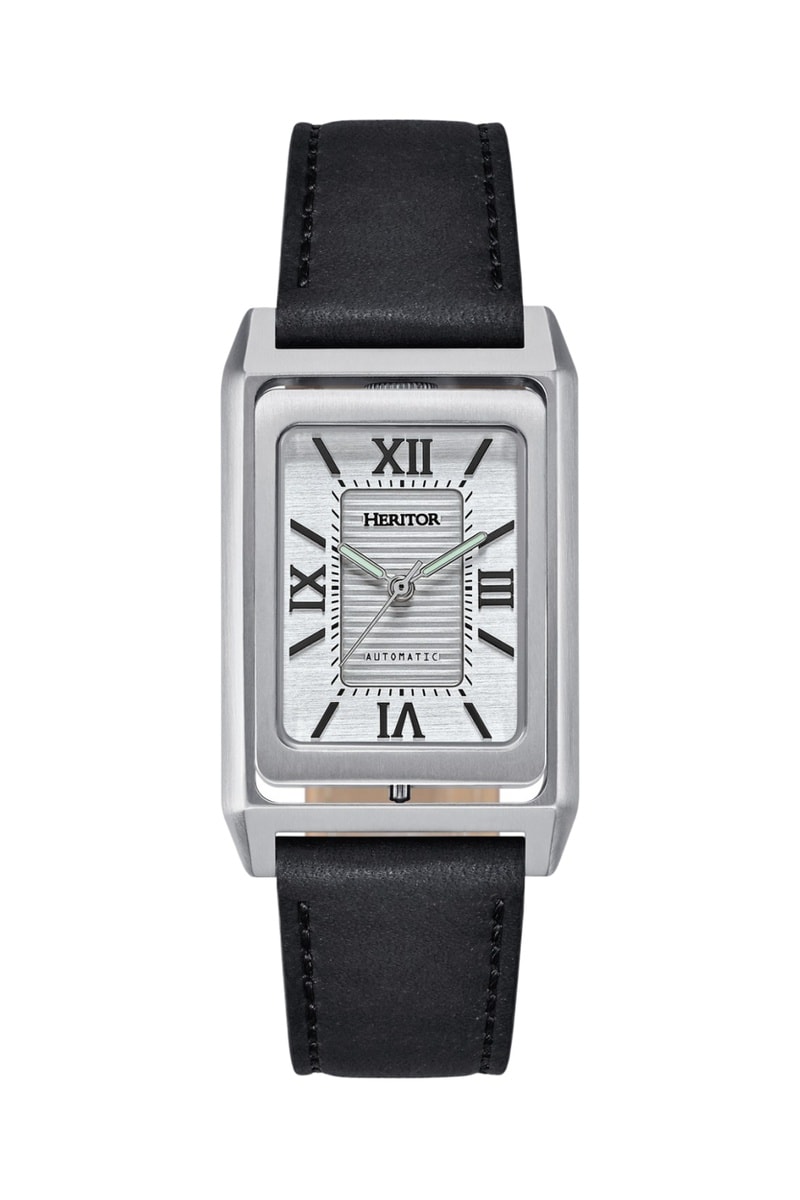 Reloj automático de piel Esteban - Negro y plateado