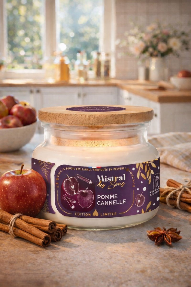 Vela perfumada con aroma a Manzana caramelizada con canela.