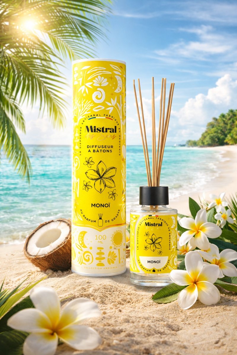 Notas de fondo: tiaré, monoi y jazmín sambac
