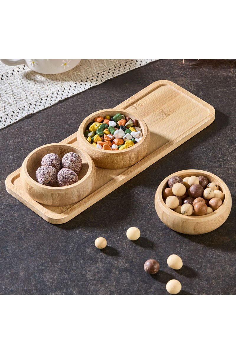 - 3 boles de aperitivo de bambú - 9 x 9 x 3 cm