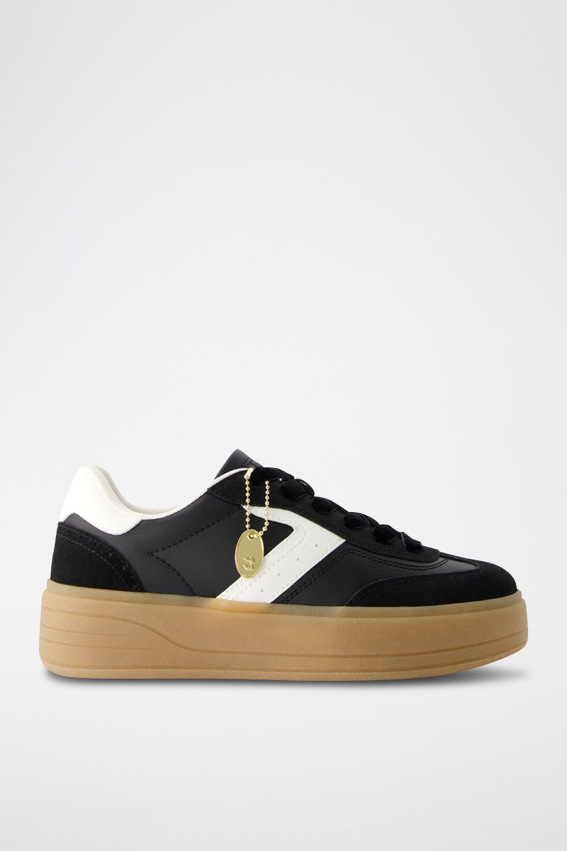 Zapatillas de piel con plataforma - Negro