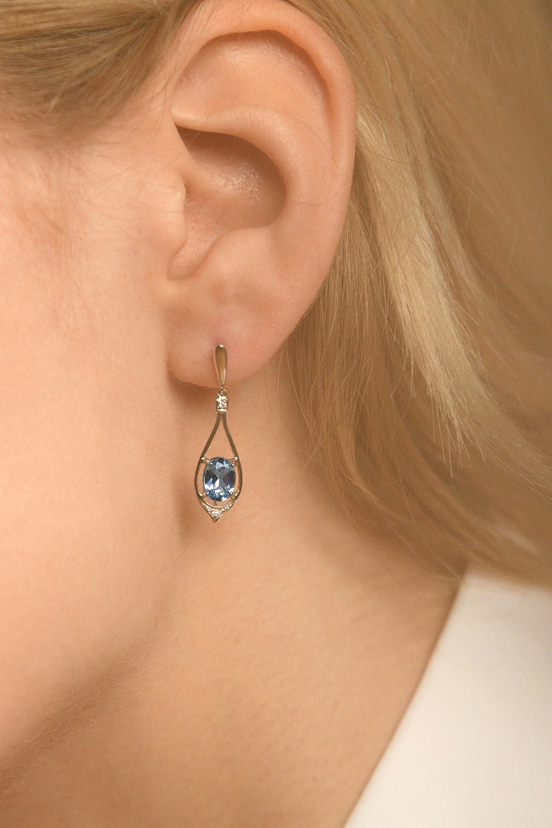 Pendientes de oro blanco con 2 diamantes y 1 topacio.