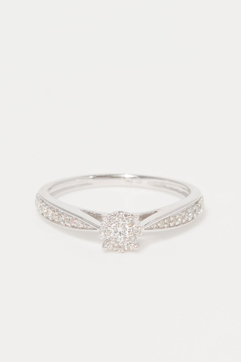 Solitario de oro blanco con 28 diamantes.