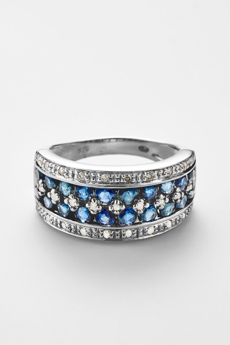 Anillo de oro blanco con 29 diamantes y 20 zafiros.