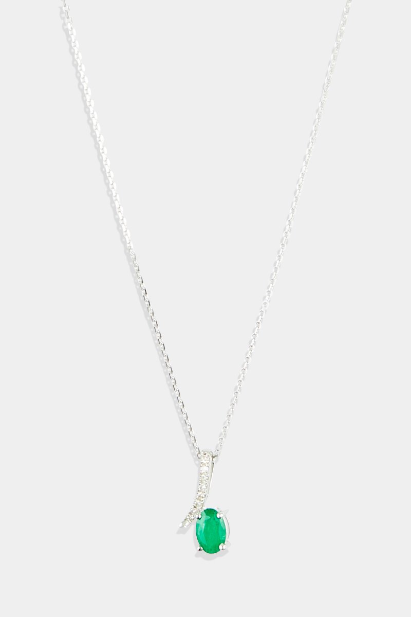 Colgante Belle émeraude - Oro blanco, diamantes y esmeralda