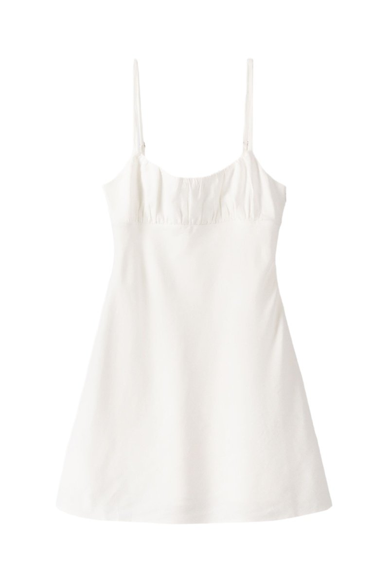 Vestido evasé de lino - Blanco