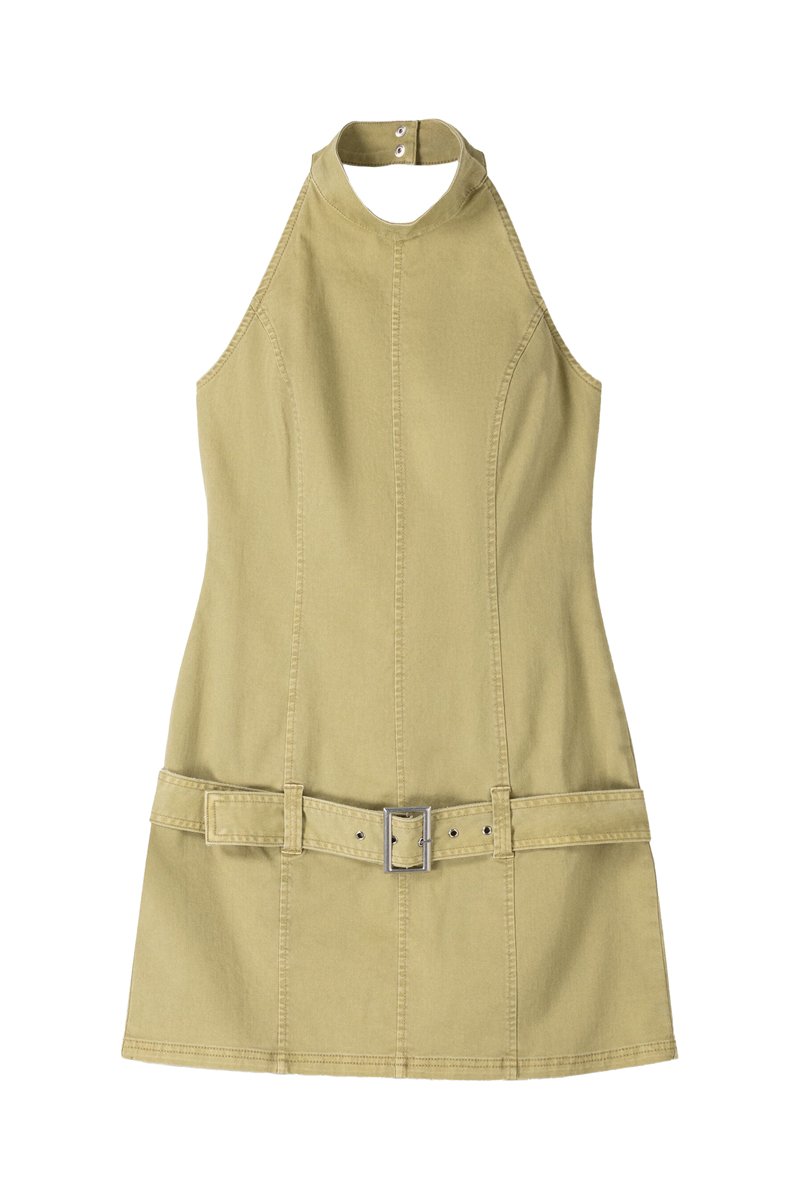 Vestido recto con cuello halter.