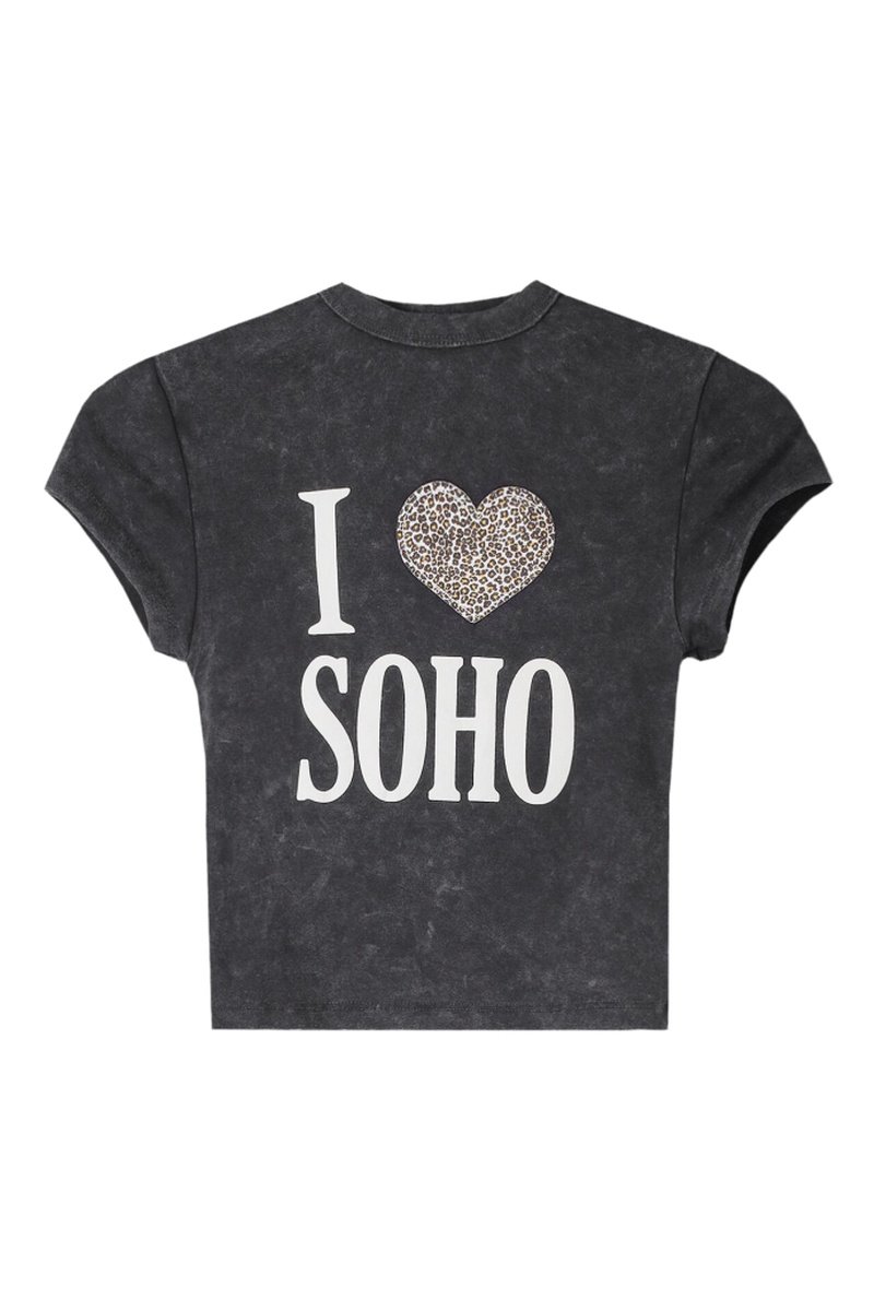 Texto y estampado de corazón delante.