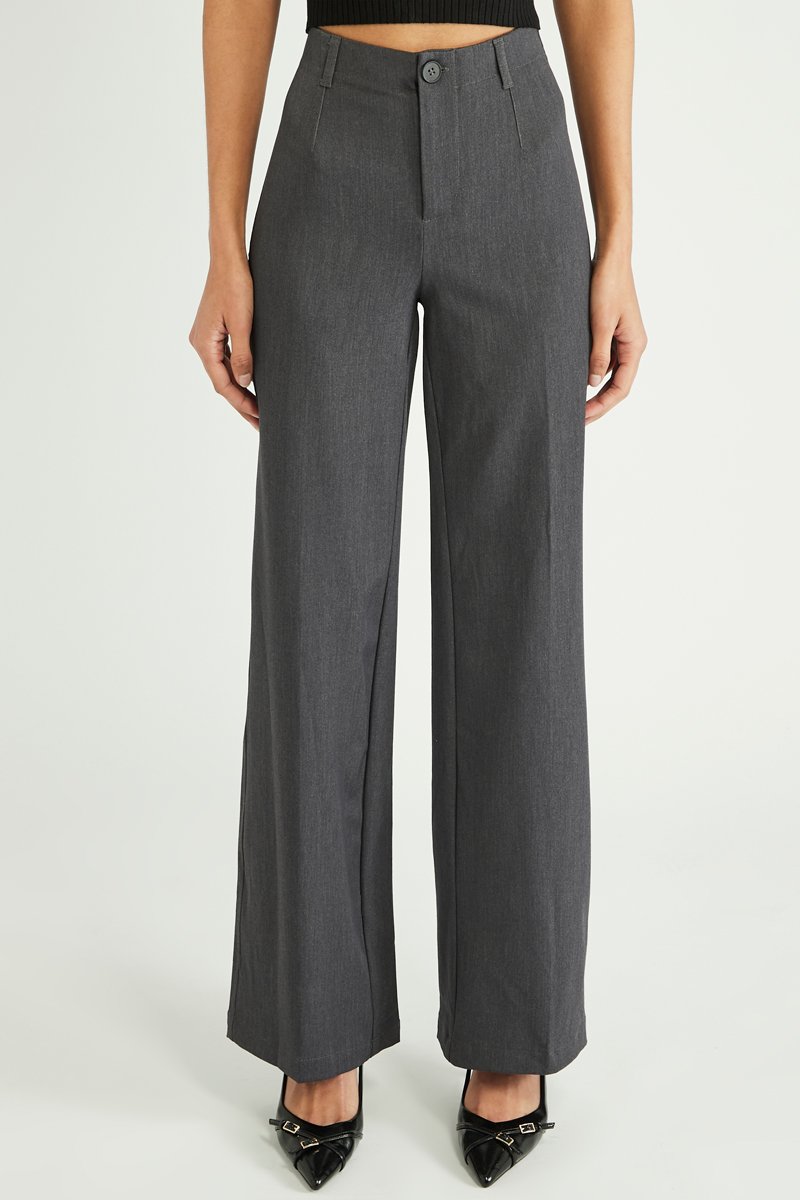Pantalón wide leg de tiro alto - Gris