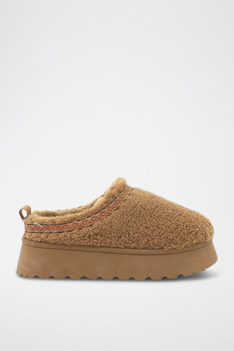 Zuecos forrados con plataforma - Camel