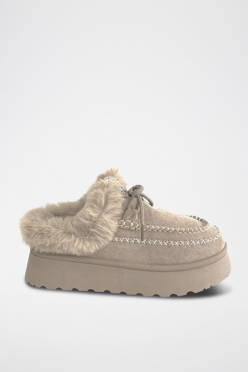 Mocasines forrados con plataforma - Caqui