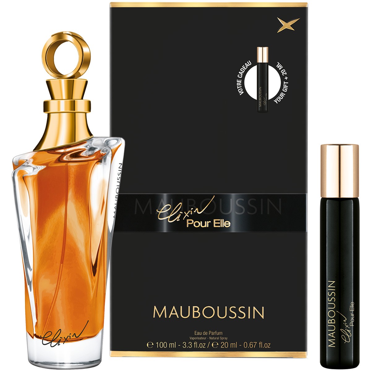 Elegante y cautivador, Mauboussin Elixir Pour Elle deja un halo de misterio alrededor de una mujer segura de su feminidad que juega con su sensualidad.