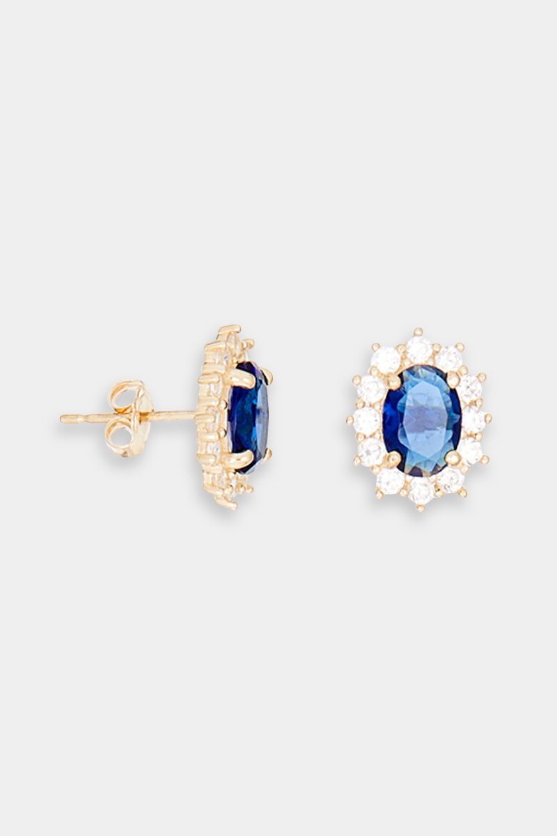 Dormilonas de oro amarillo con un zafiro y circonitas.