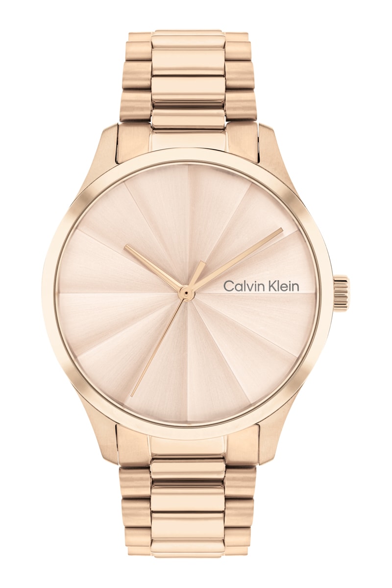 Reloj de cuarzo de acero y chapado en ion de oro rosa - Rosa dorado
