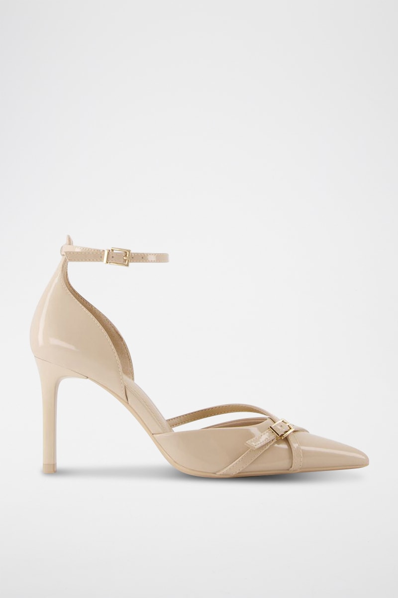 Tiras cruzadas, 1 de ellas con hebilla delante.