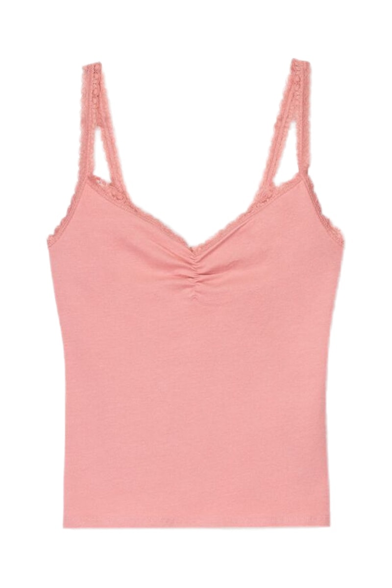 Detalles de encaje en los tirantes, delante y en los laterales.