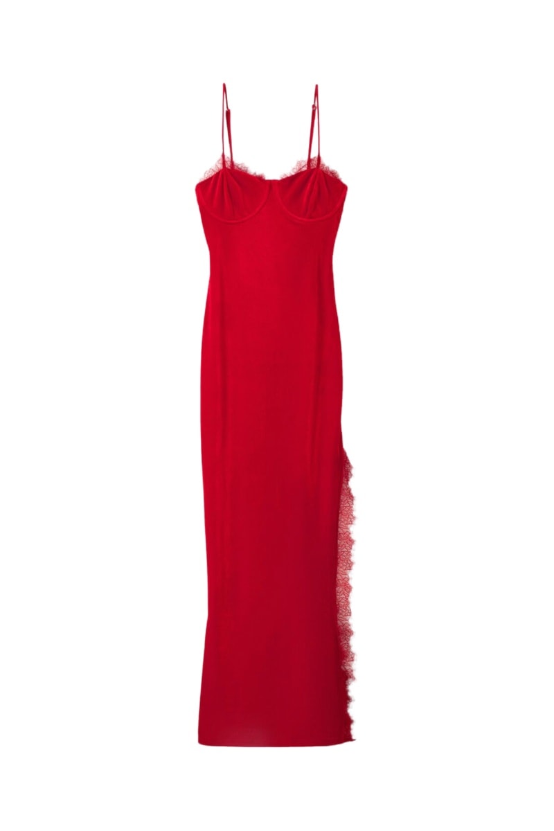 Vestido recto de terciopelo - Rojo