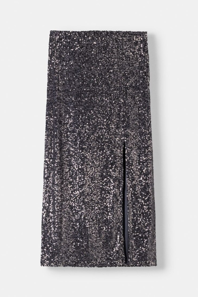 Falda recta con lentejuelas.